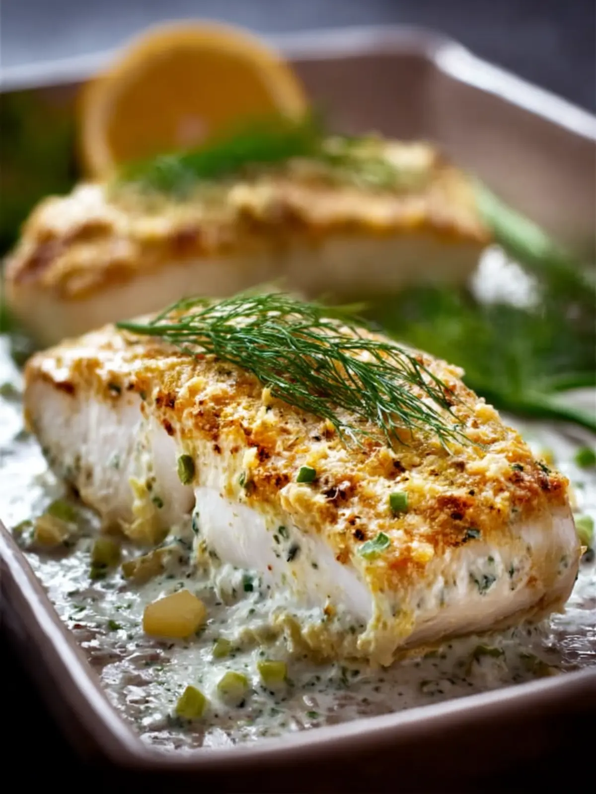 Introduction to Baked Halibut with Sour Cream, Parmesan, and Dill