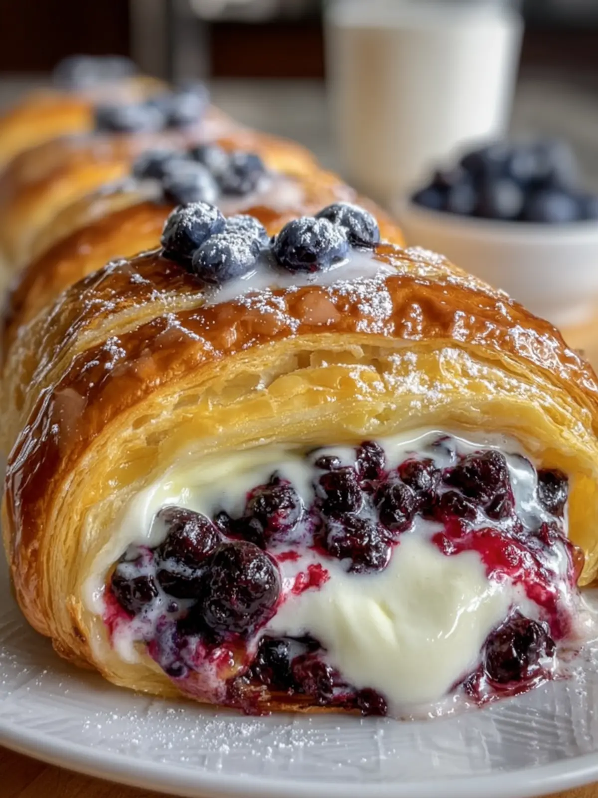 Creamy Filling: The cream cheese filling adds a delightful creaminess that perfectly balances the fresh blueberries. It’s sweetened just enough to complement the tanginess of the cream cheese, creating a harmonious blend of flavors.