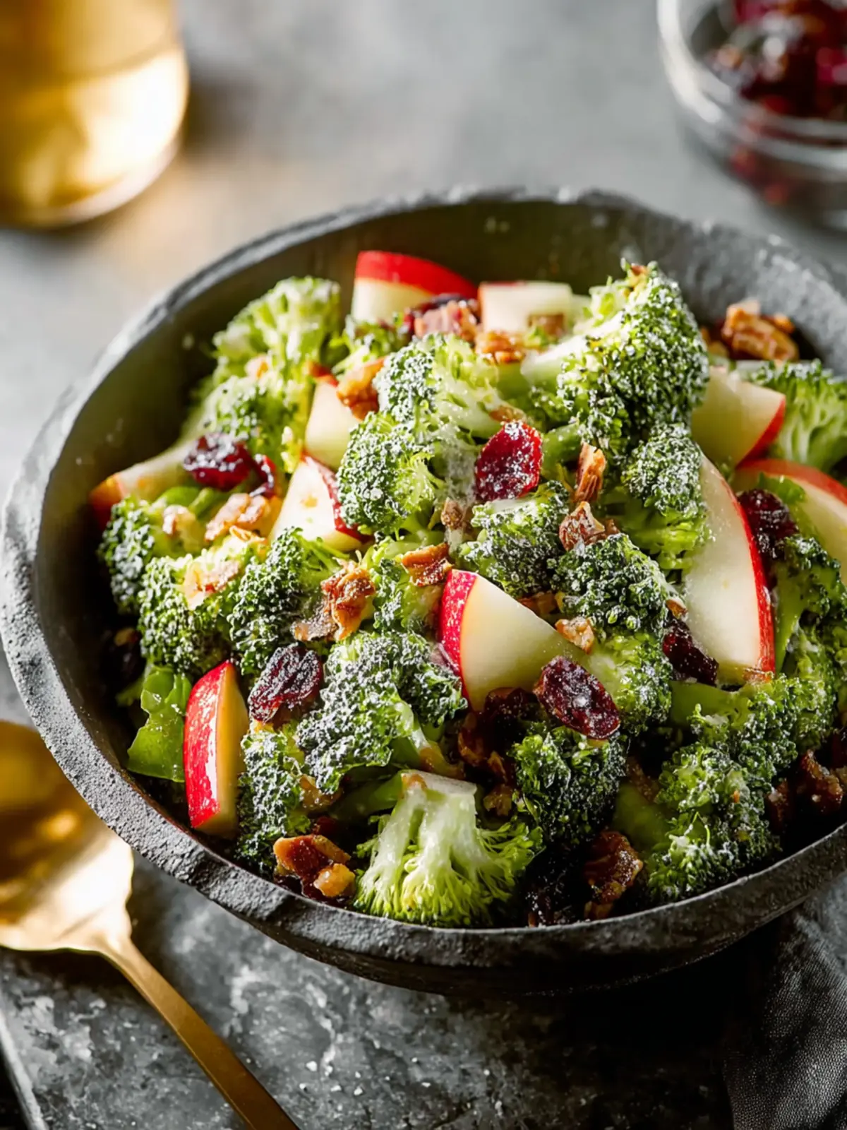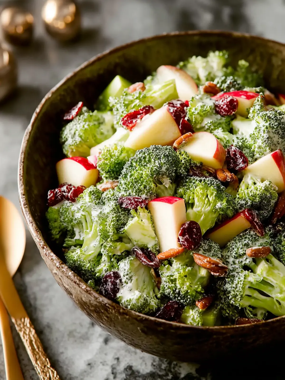 A refreshing and nutritious salad featuring fresh broccoli, sweet apples, and a tangy dressing.