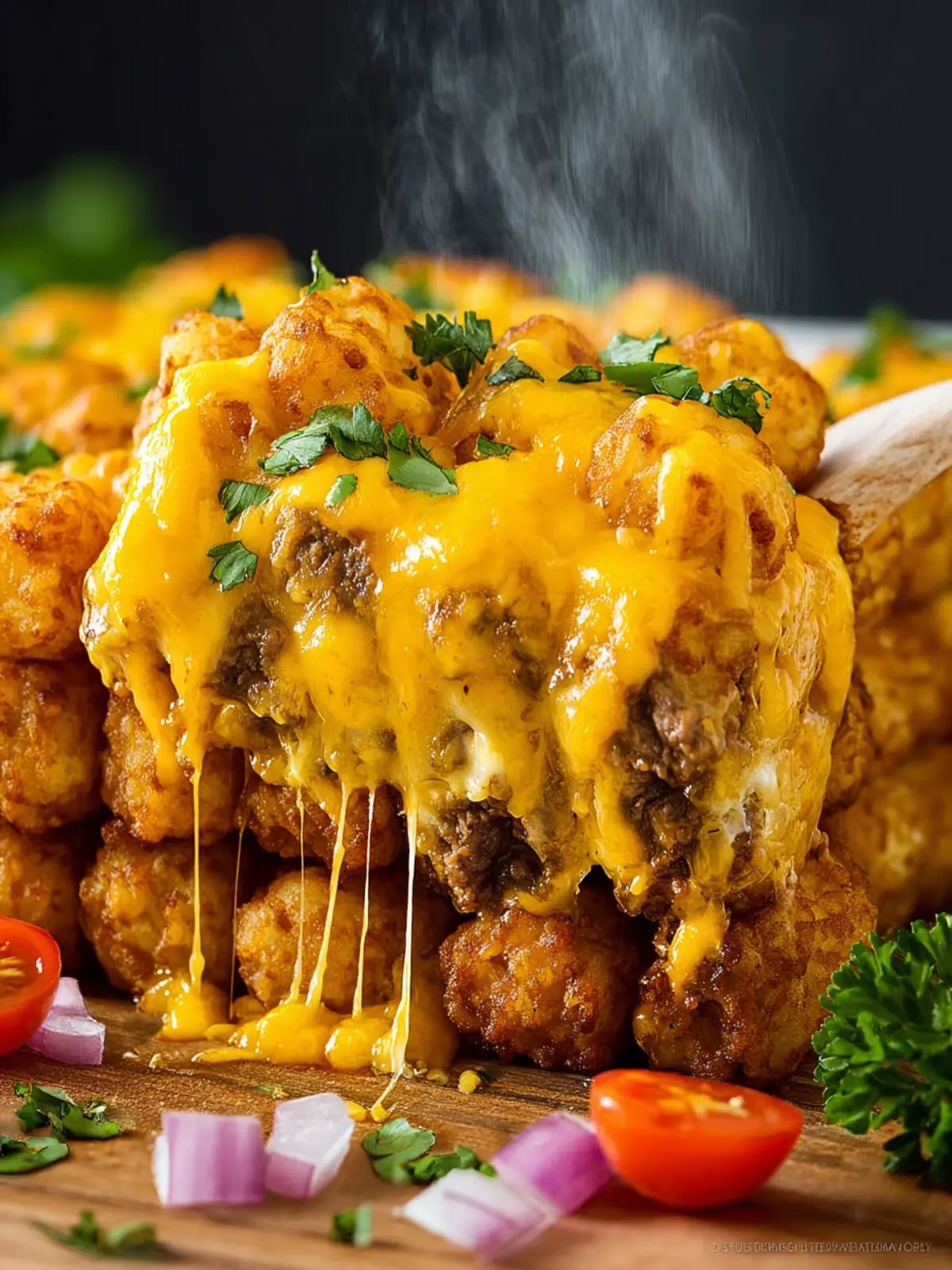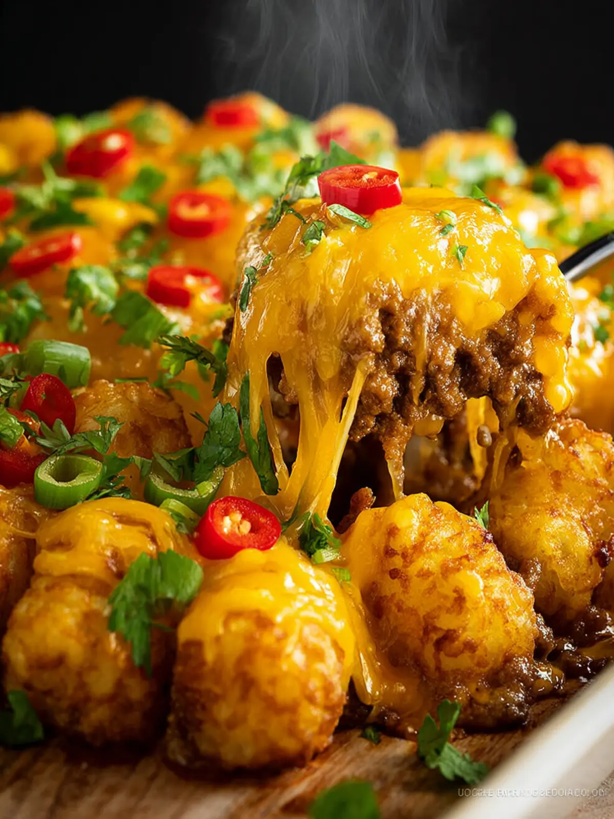 Tator Tots: The star of the show! Crispy tator tots on top not only provide a delightful crunch but also soak up all the amazing flavors beneath them.