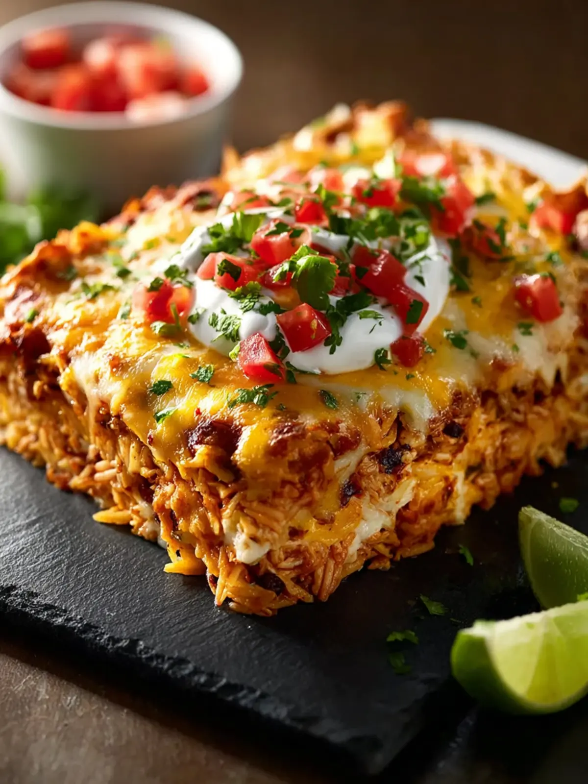 • Flavor Explosion: Each bite bursts with the savory taste of chicken and spices, complemented by the freshness of toppings like cilantro, avocado, and sour cream. The layers create a terrific flavor profile that will have you coming back for seconds.
