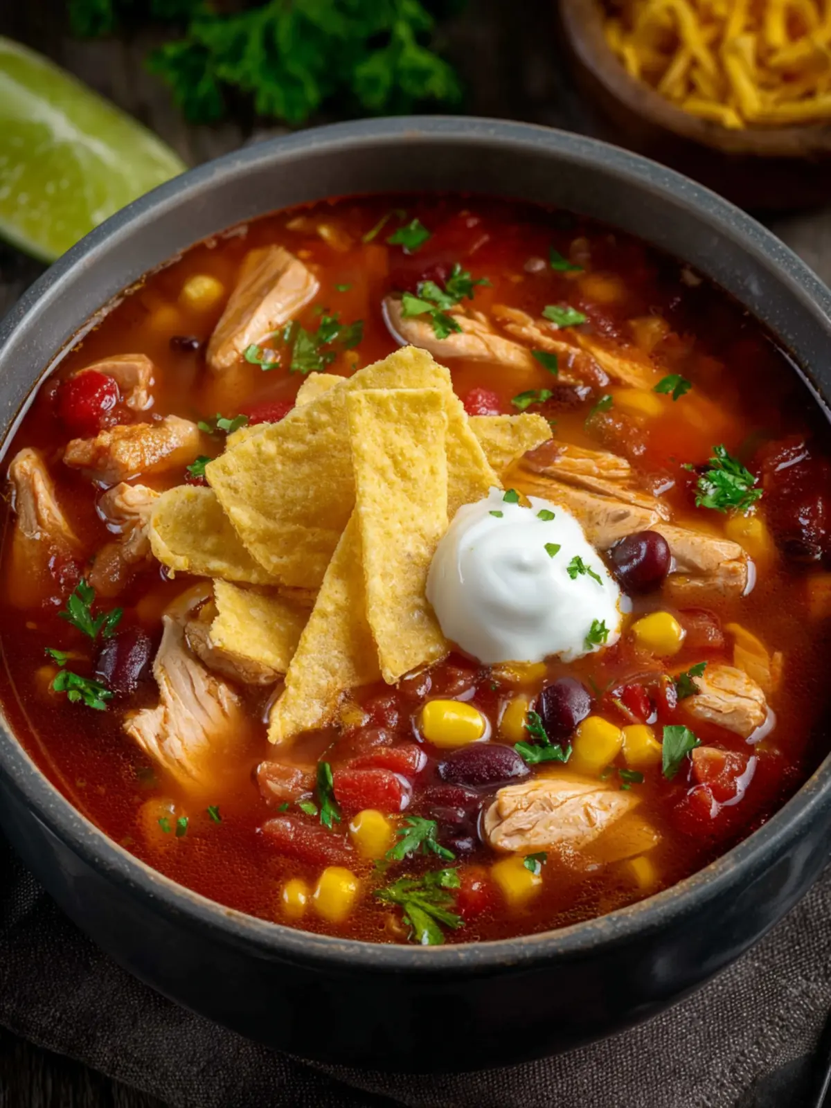 Tortilla Chips: These aren’t just for crunch but also add a fun, salty layer to the soup. Crumbling them on top right before serving takes the texture to another level.