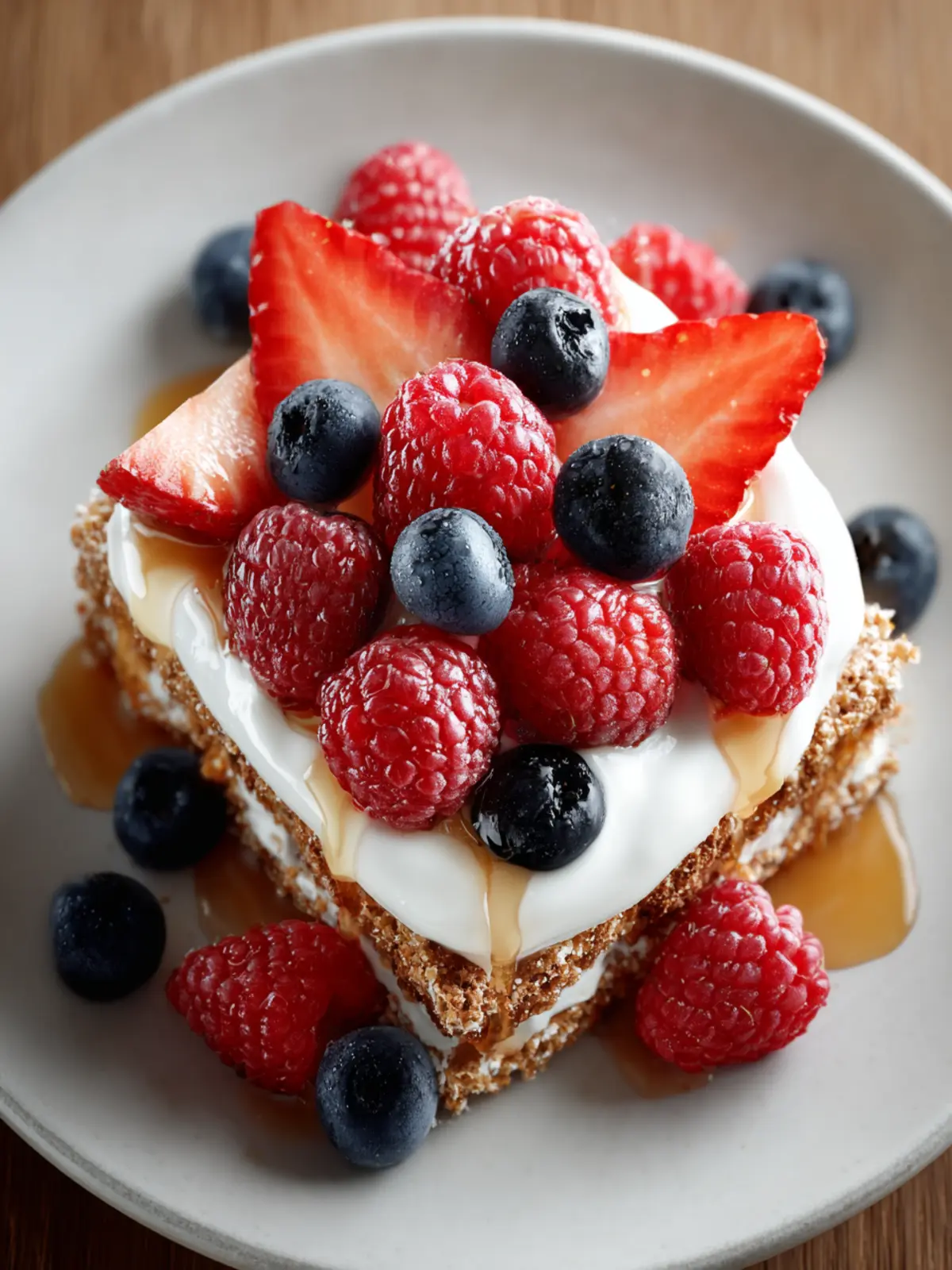 - Top each square with Greek yogurt, fresh berries, and a drizzle of honey.