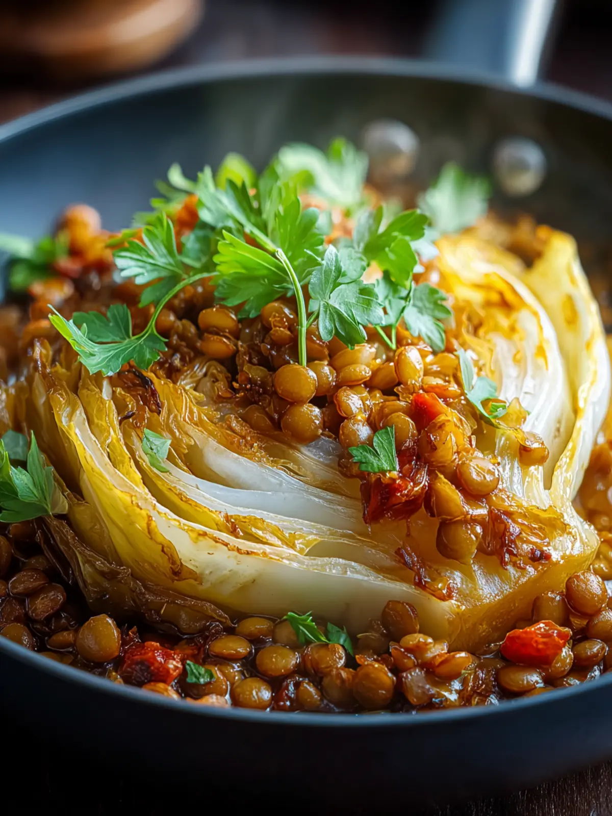 Experiment with fresh herbs! Adding thyme, rosemary, or even a sprinkle of dill at the end of cooking can deepen the flavor of your cozy braised cabbage and lentils. Fresh herbs can brighten the dish and bring a delightful aroma to your kitchen.