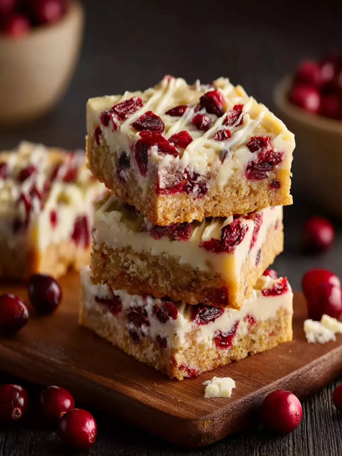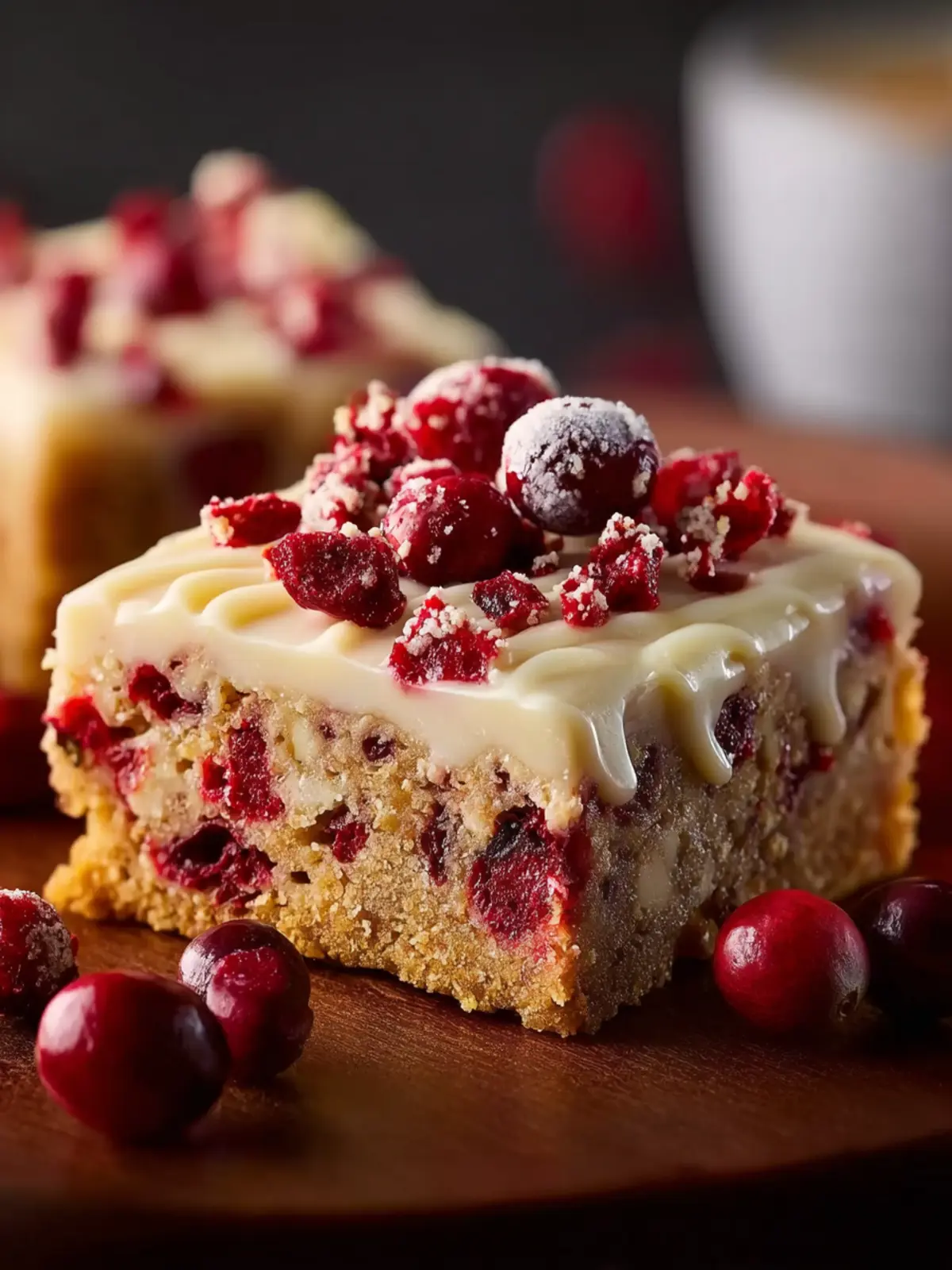 These bars are perfect for indulging during those chilly evenings or sharing with friends and family at holiday parties. The vibrant red of the cranberries combined with the creamy frosting not only pleases the palate but also adds a festive touch to your dessert table.