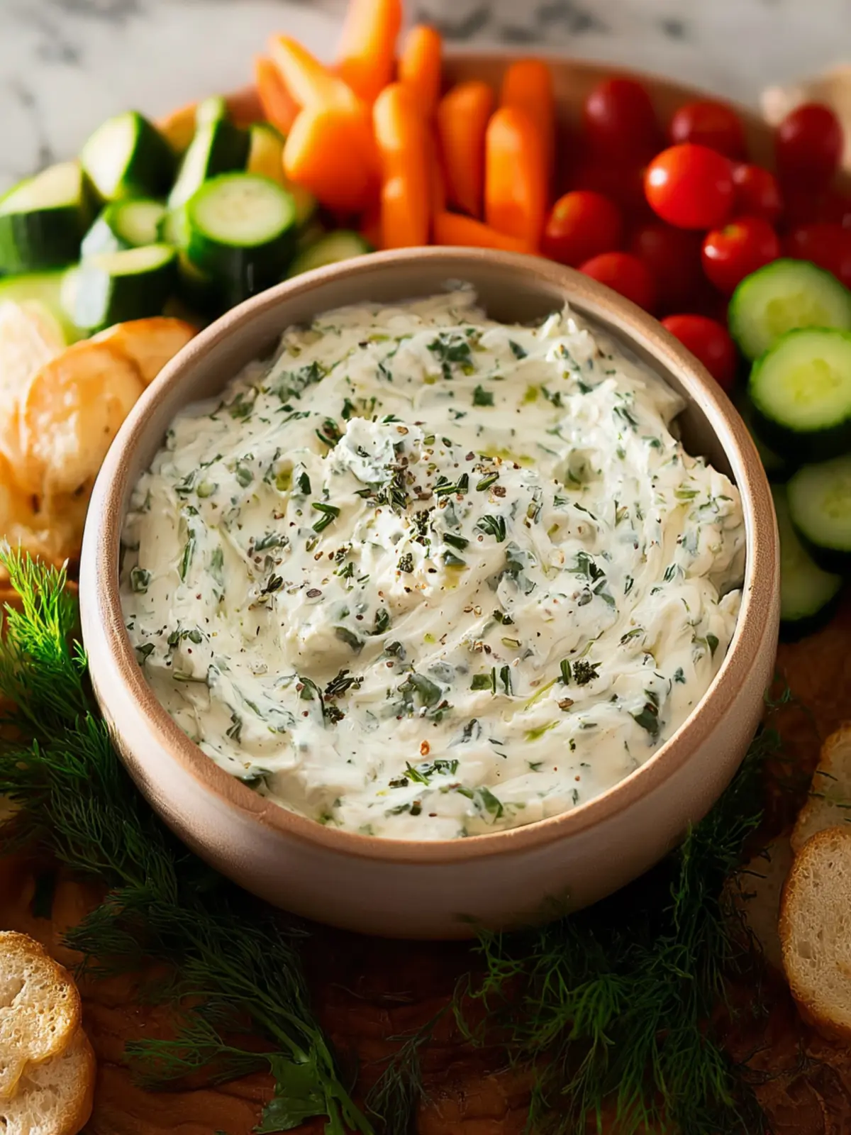 A delicious and creamy herb dip perfect for vegetables or as a spread.