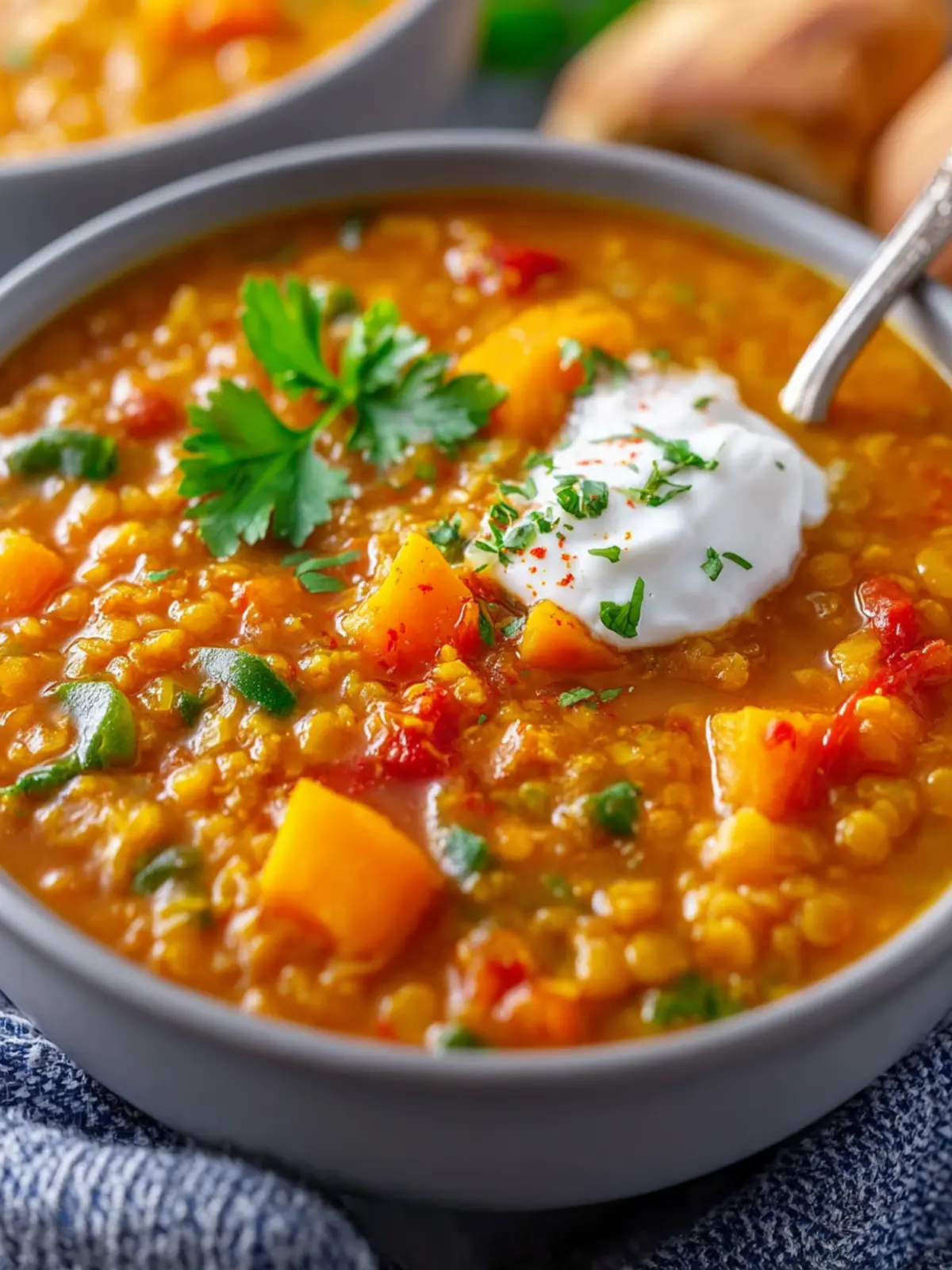 A delicious and hearty curried lentil soup that’s perfect for a cozy meal.