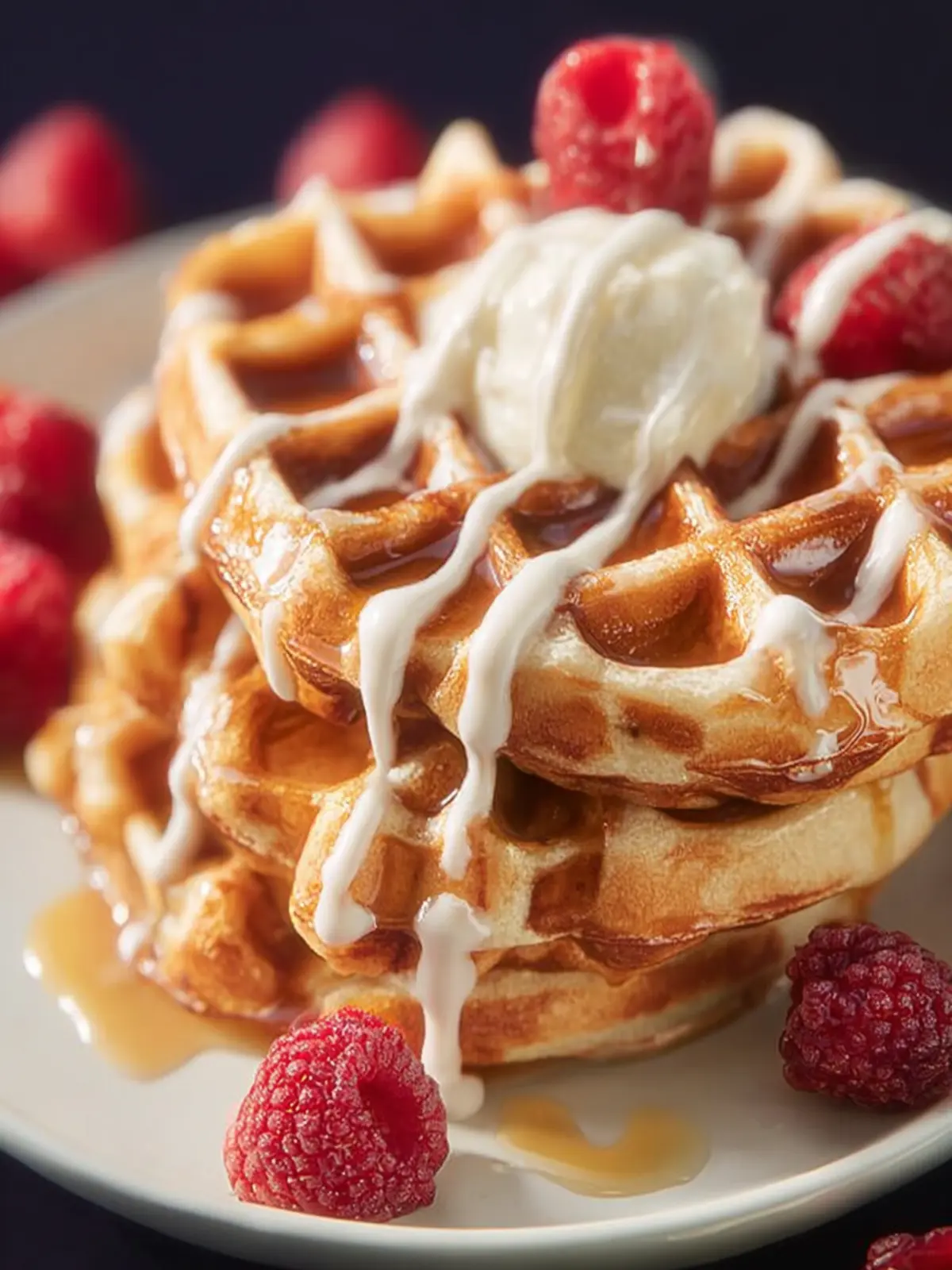 Maple Syrup: A drizzle of maple syrup on top not only adds sweetness but also beautifully complements the cinnamon flavor, making your waffles irresistible.