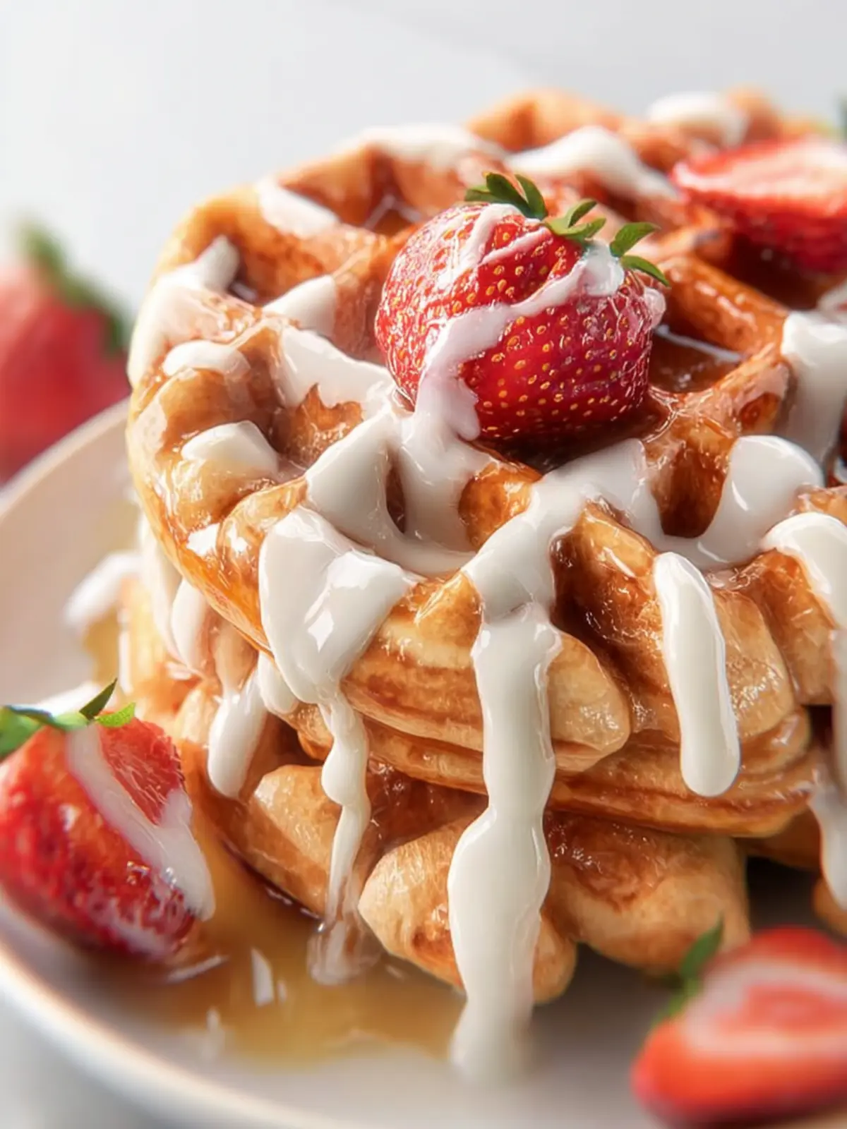 Delicious waffles made from refrigerated cinnamon rolls, topped with icing for a sweet treat.