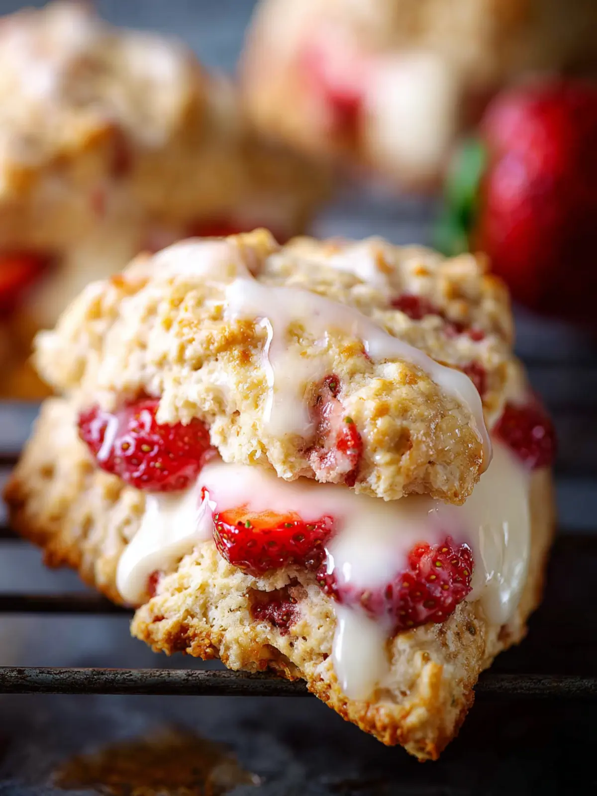Fresh Strawberries: Nothing beats the taste of ripe, juicy strawberries. Their natural sweetness and vibrant color bring the scones to life. Feel free to chop them up into small pieces, allowing them to burst with flavor in every bite.