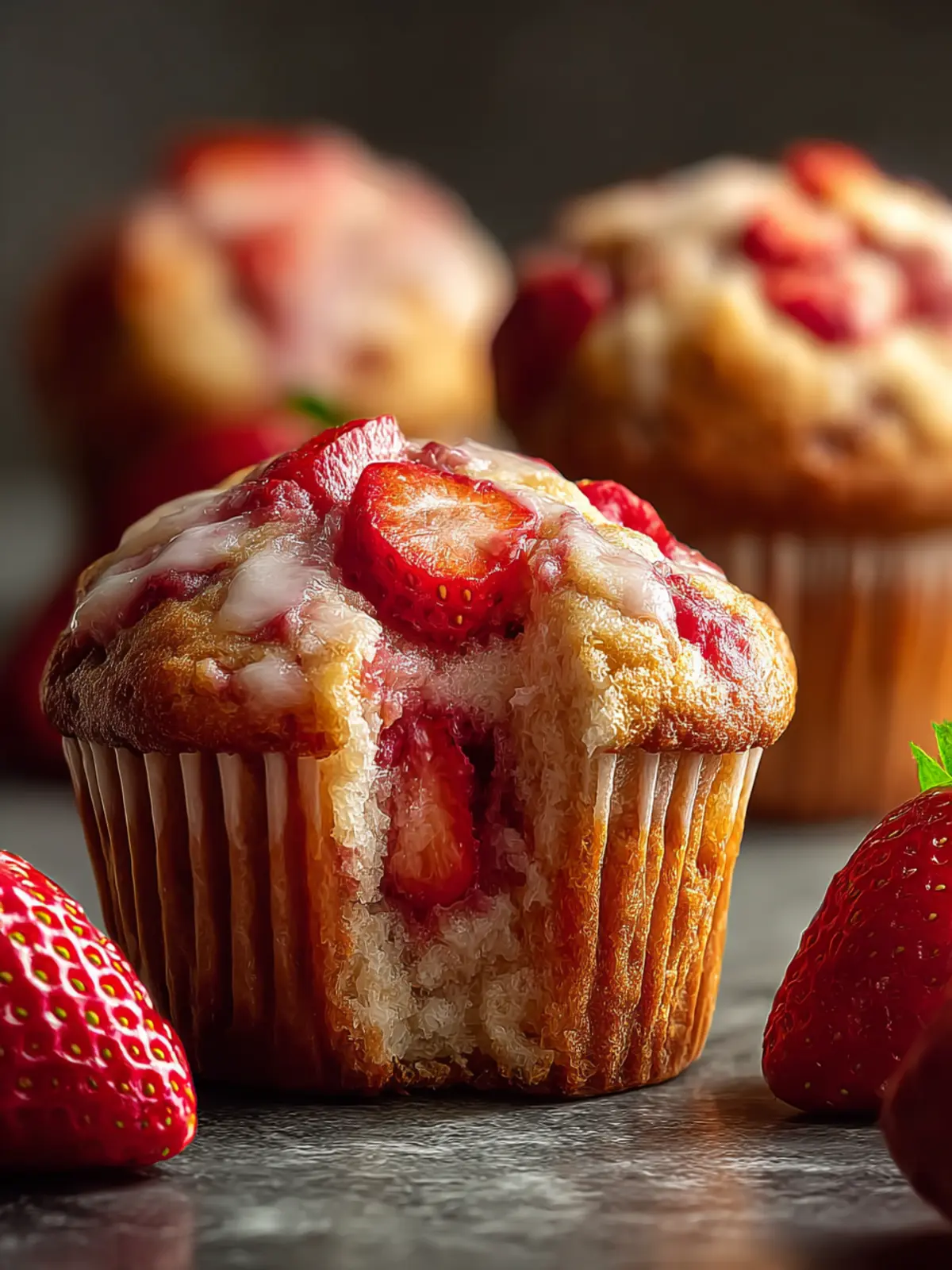 Fresh Strawberries: The star of our muffins! Juicy and sweet, fresh strawberries burst with flavor, enhancing the overall deliciousness and making you crave more with every delightful bite.