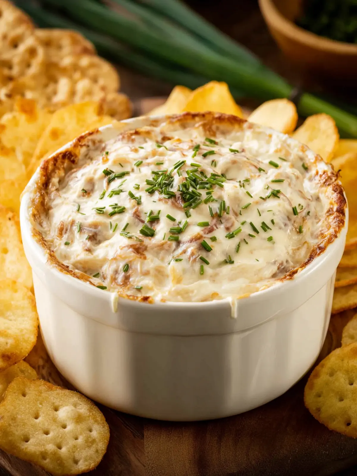 - Crackers: Choose whole grain or buttery crackers to complement the rich, savory taste of the French onion dip.