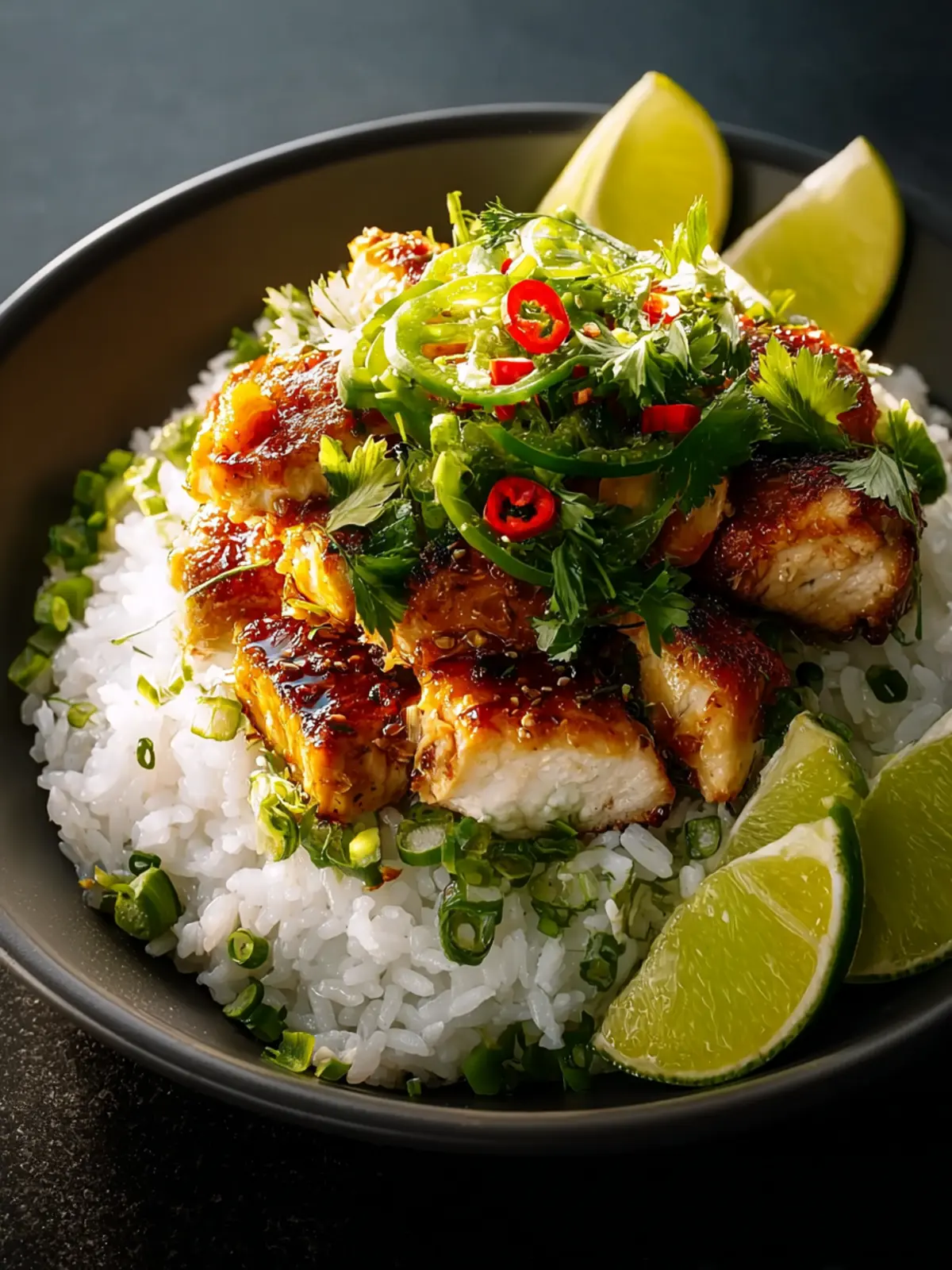 - Garnish and Serve: Finish with a sprinkle of fresh chopped cilantro and an extra drizzle of honey-lime glaze. Serve immediately.