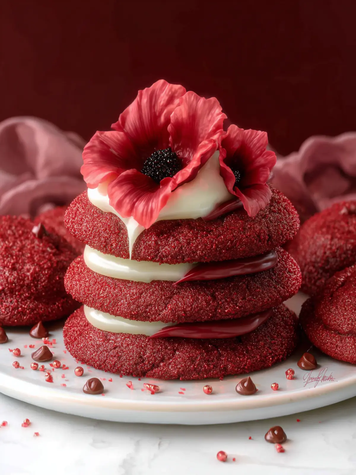 In wrapping up our adventure with red velvet blossoms, it’s clear these delightful treats are more than just visually stunning; they’re a true celebration of flavors. The fusion of rich cocoa and vibrant red, paired with a luscious cream cheese filling, transforms a simple cookie into a memorable dessert that’s perfect for any occasion. Whether you’re sharing them at a gathering or savoring them solo with a cup of coffee, red velvet blossoms are sure to leave a lasting impression. So, let’s roll up our sleeves, bake a batch, and create sweet memories together!