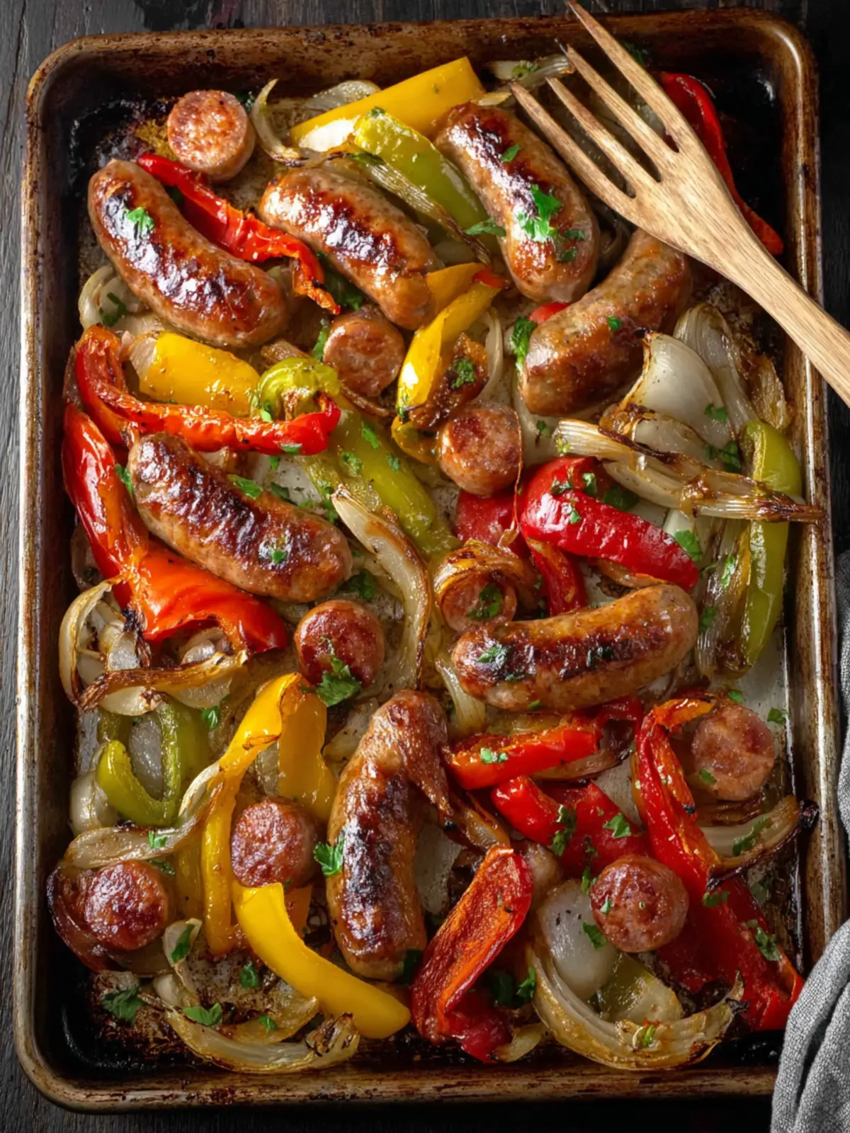 • Keep an eye on cooking times. Depending on your oven, it might require a little adjustment to get that perfect caramelization. If you notice the sausages are browning too quickly, simply cover the pan loosely with foil.