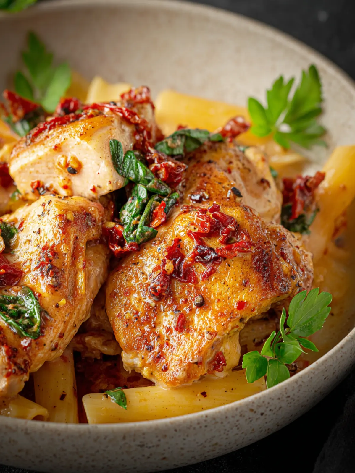 The simplicity and richness of this recipe resonate with the busy professionals looking for not just a meal, but a delightful experience after a long day. The tender chicken simmering in a creamy sun-dried tomato sauce with hints of garlic and herbs brings warmth and heart to your table. It’s perfect for romantic dinners, family gatherings, or even a solo treat to indulge yourself.