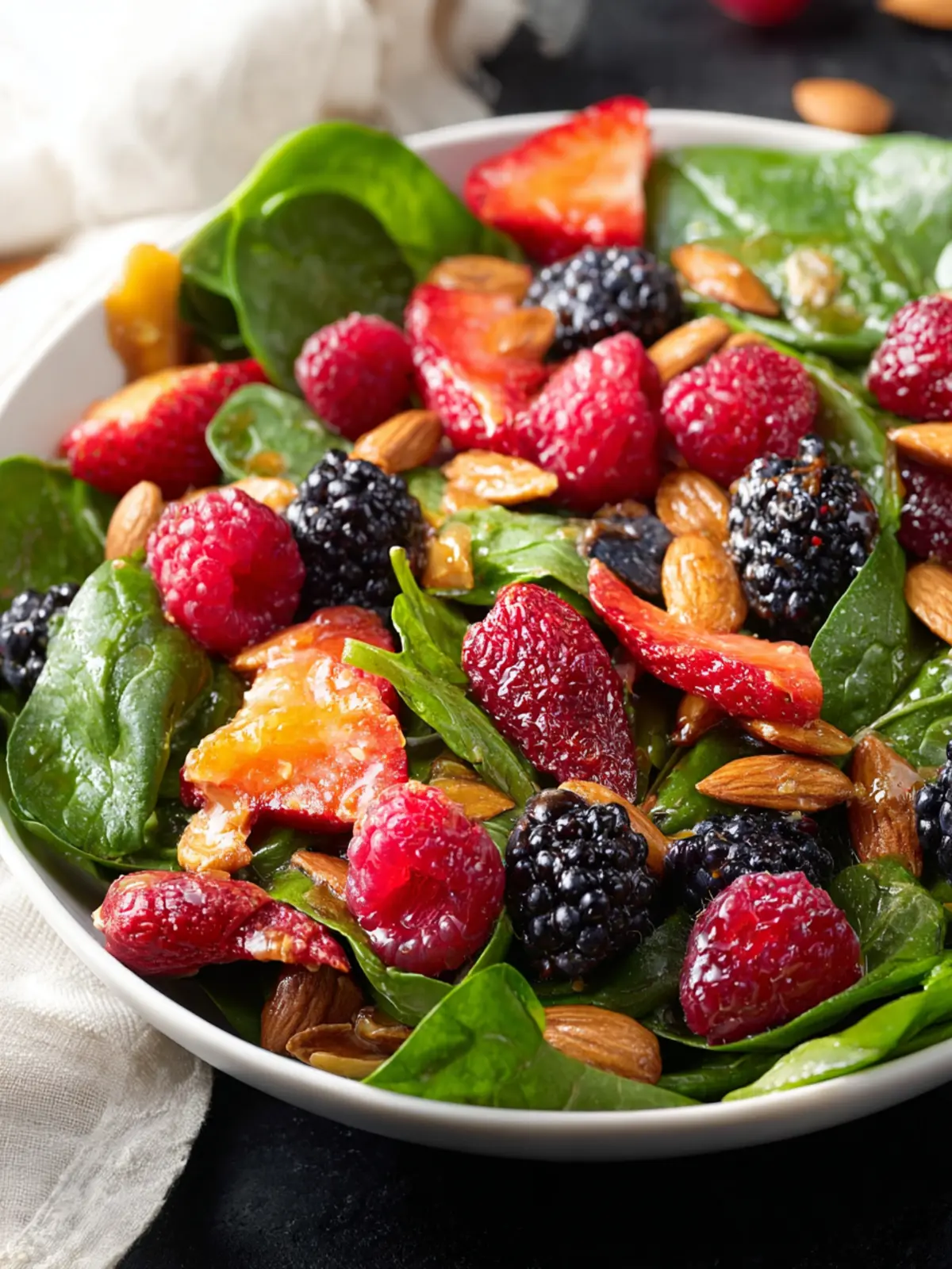 This delicious dish offers the perfect balance of sweet and savory, making it incredibly versatile. Whether you’re serving it as a main course or a side dish, the combination of nutrient-rich spinach, juicy berries, and caramelized almonds creates an array of flavors that tantalizes the taste buds.
