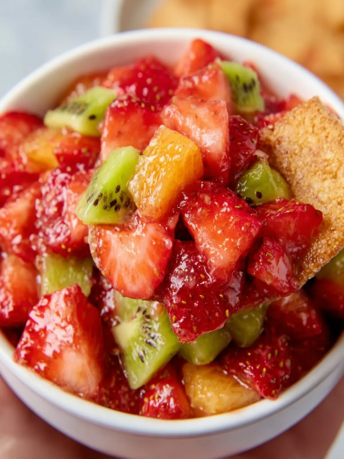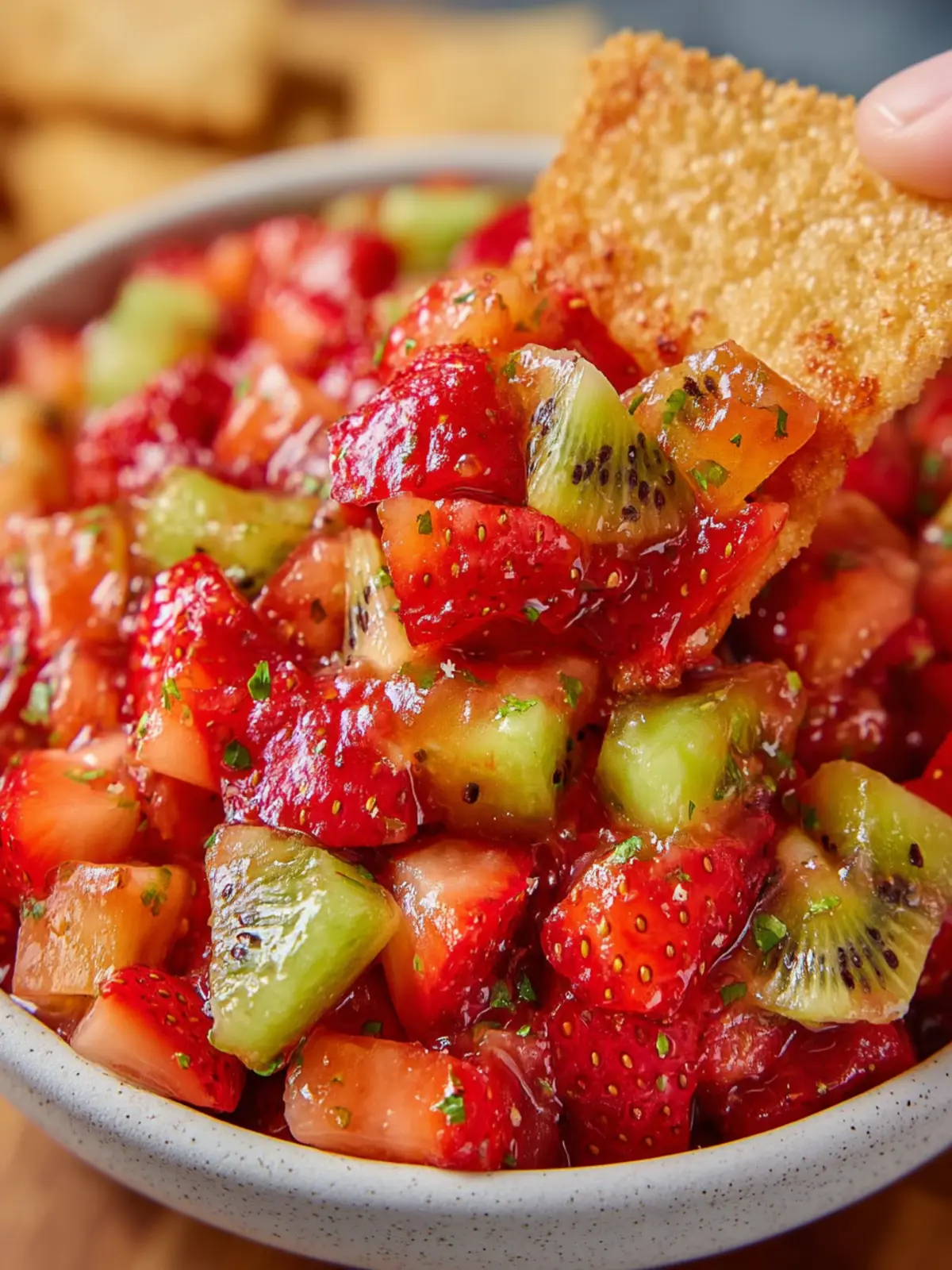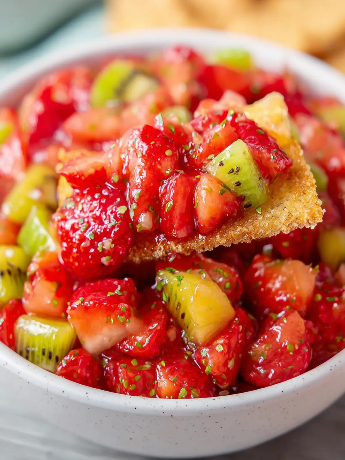 • Savory Version: Swap out some of the fruit for diced avocado or cucumber, giving the strawberry kiwi salsa a creamy or crunchy texture that balances the sweetness.