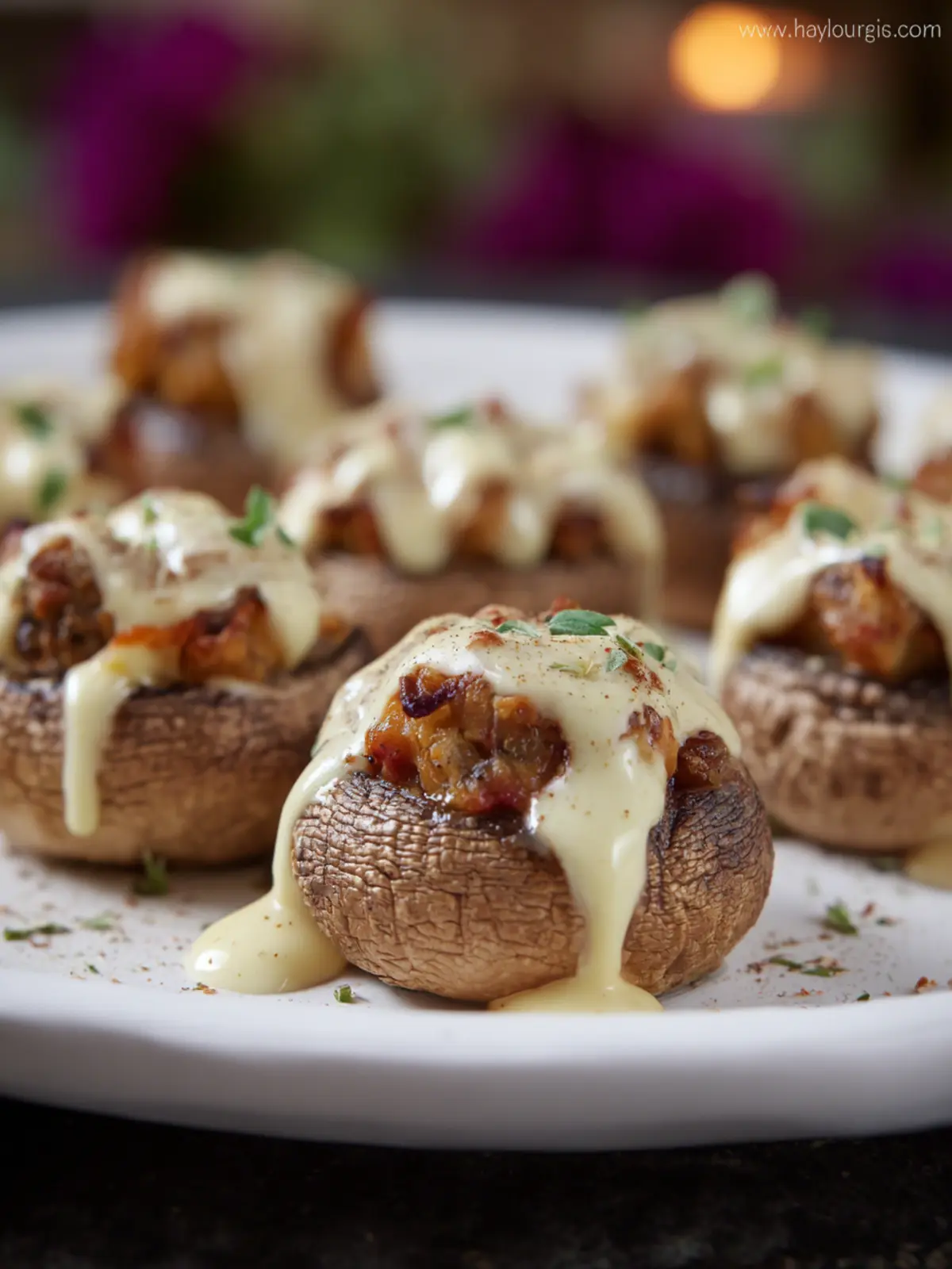 Stuffed mushrooms with a creamy cheese sauce are an exquisite blend of flavors that will elevate any gathering or cozy night in. Imagine biting into a tender mushroom cap, bursting with a creamy filling that marries the rich taste of cheese and herbs. This recipe is bound to be your go-to starter, effortlessly impressing your guests while keeping the cooking stress at bay.