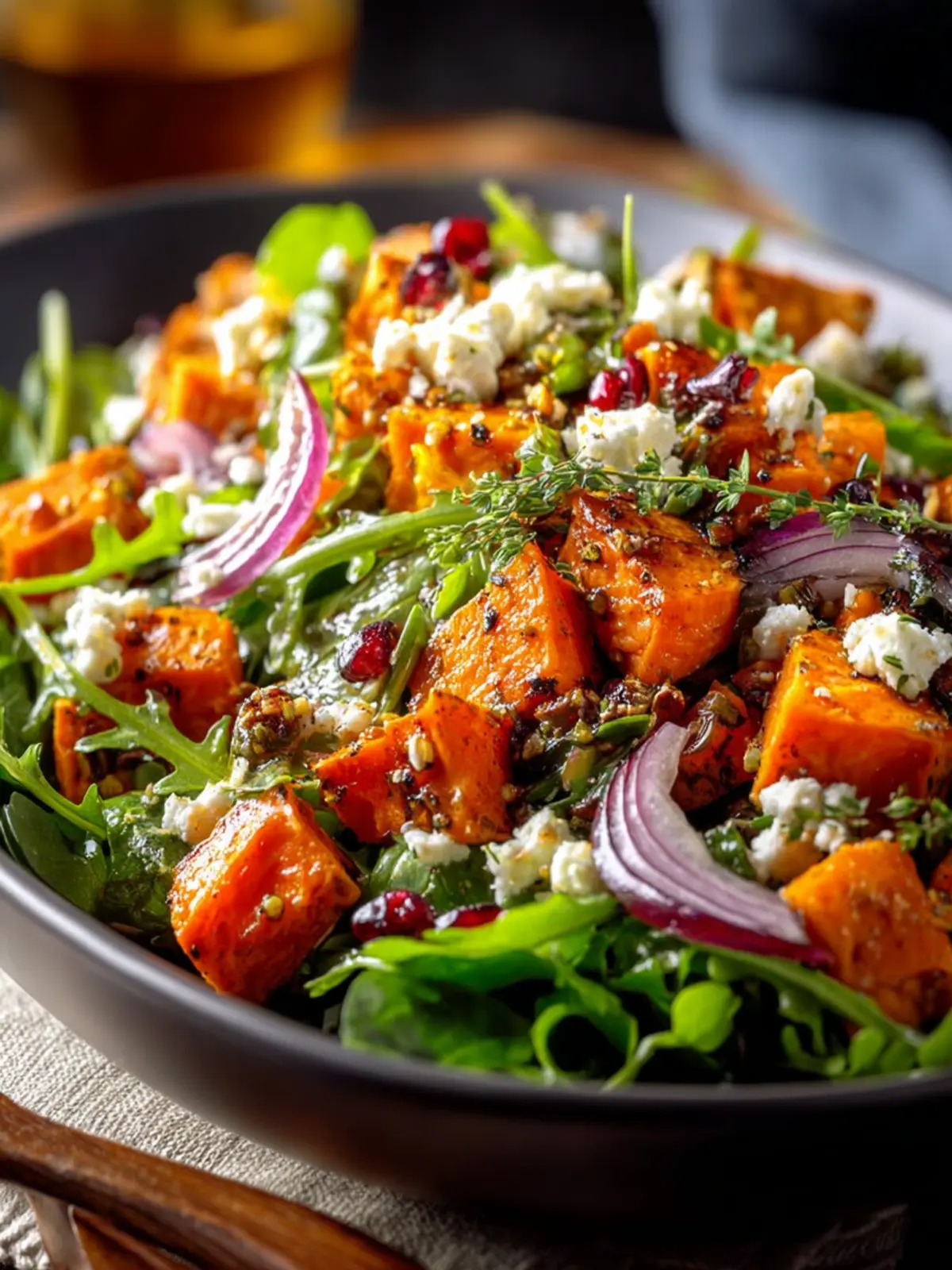 • Colorful Presentation: The rich orange of sweet potatoes against the greens of spinach or arugula offers a feast for the eyes. A visually appealing dish not only excites the taste buds but also enhances the dining experience.