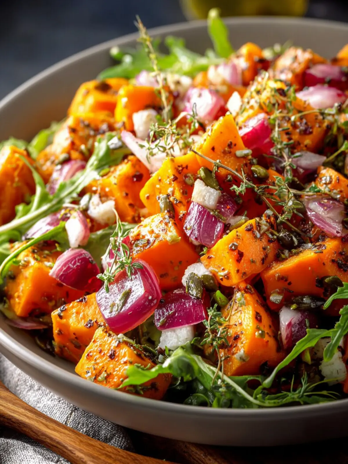 • Flavor Harmony: The sweetness of roasted sweet potatoes contrasts beautifully with savory ingredients like red onion, bell peppers, and a zesty dressing. This combination creates a flavor profile that dances on your palate.