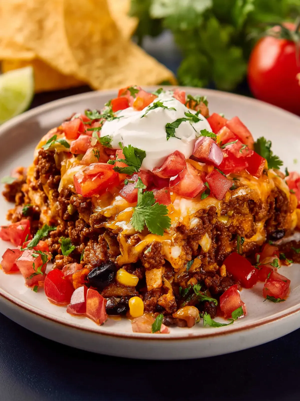 A delicious and hearty taco casserole perfect for family dinners.